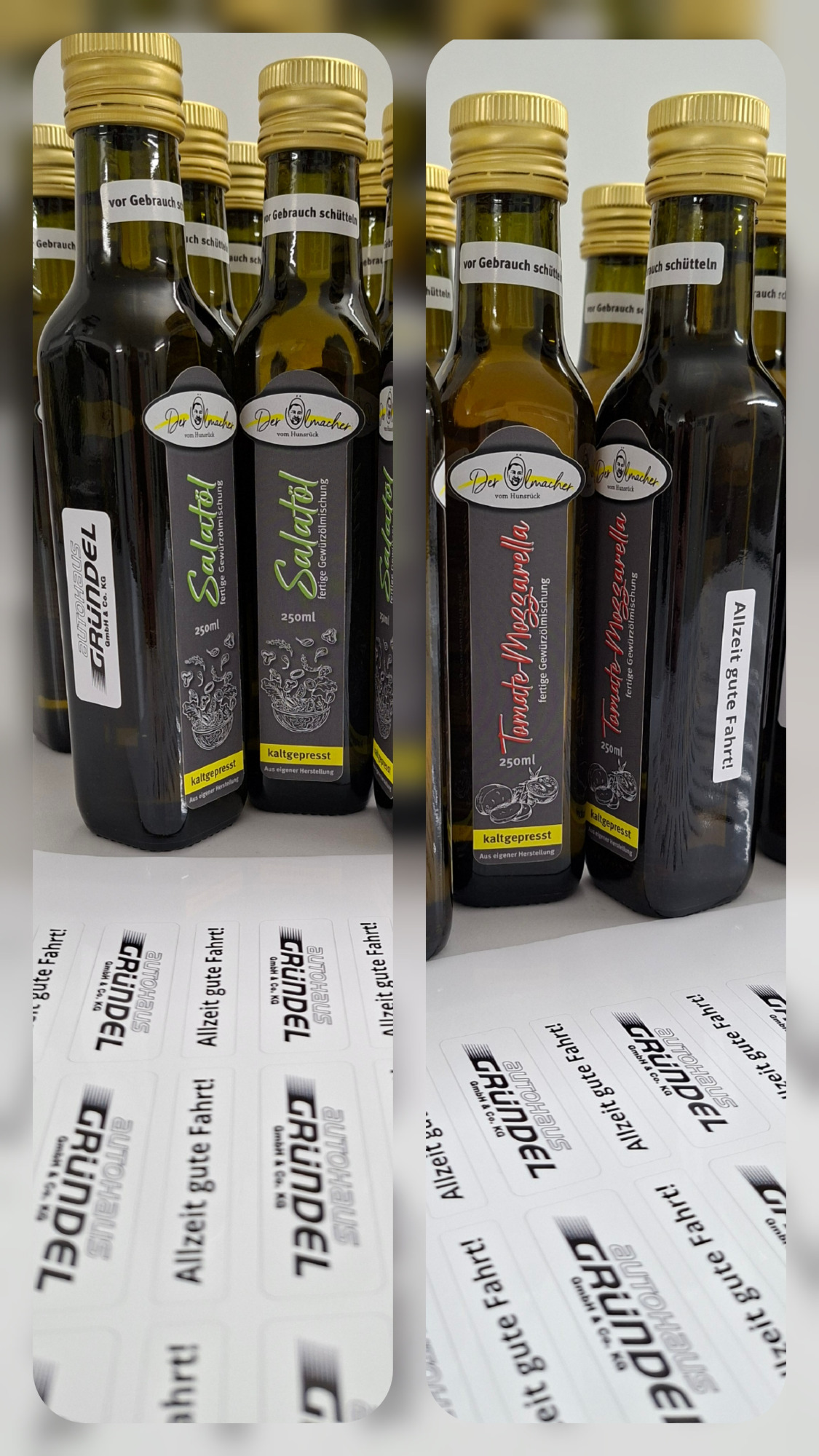 Kundengeschenke, Mitarbeitergeschenke, Weihnachtsgeschenke der Firmen mit Ihrem individuell hergestellten Logos auf den Ölflaschen