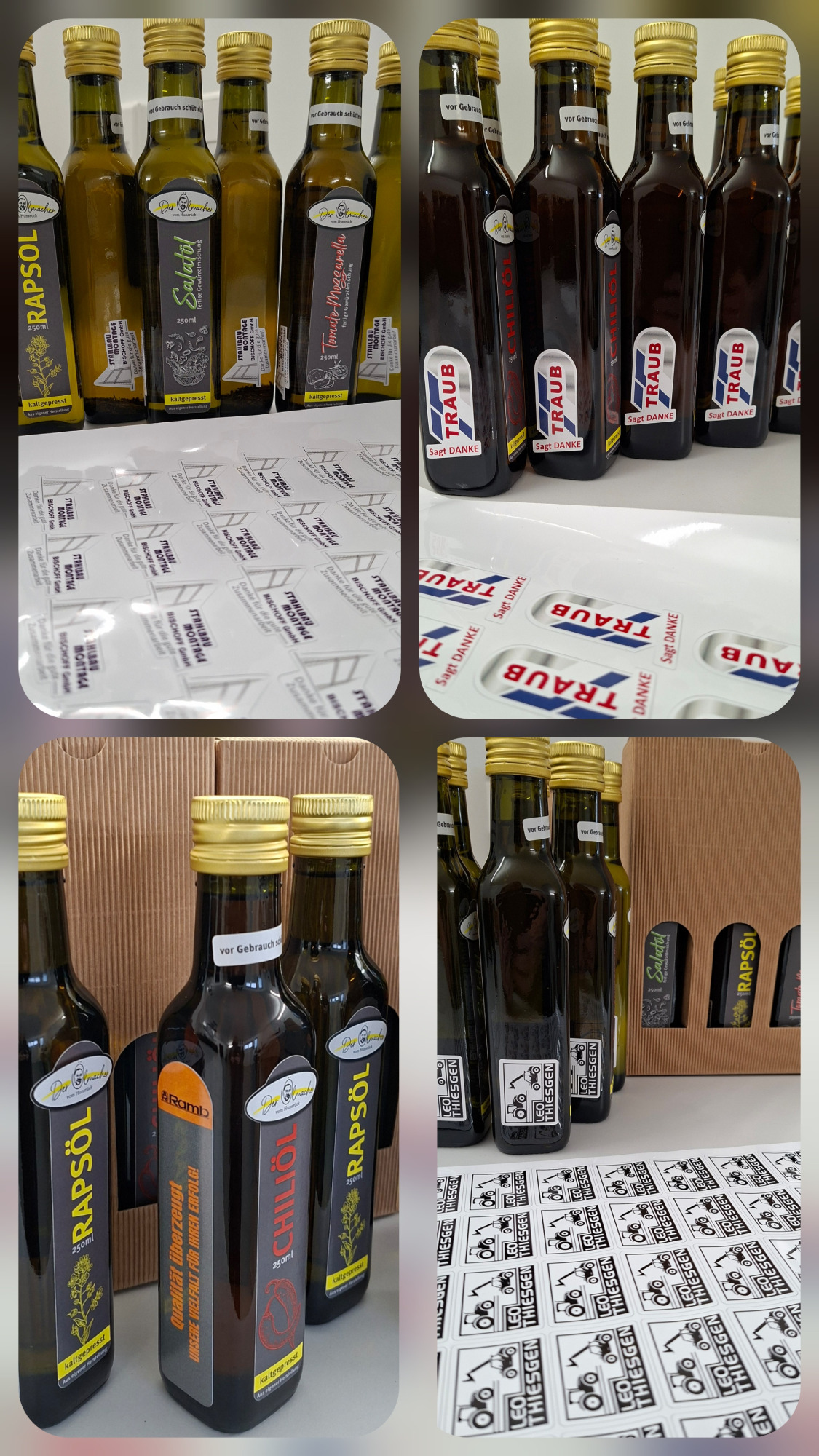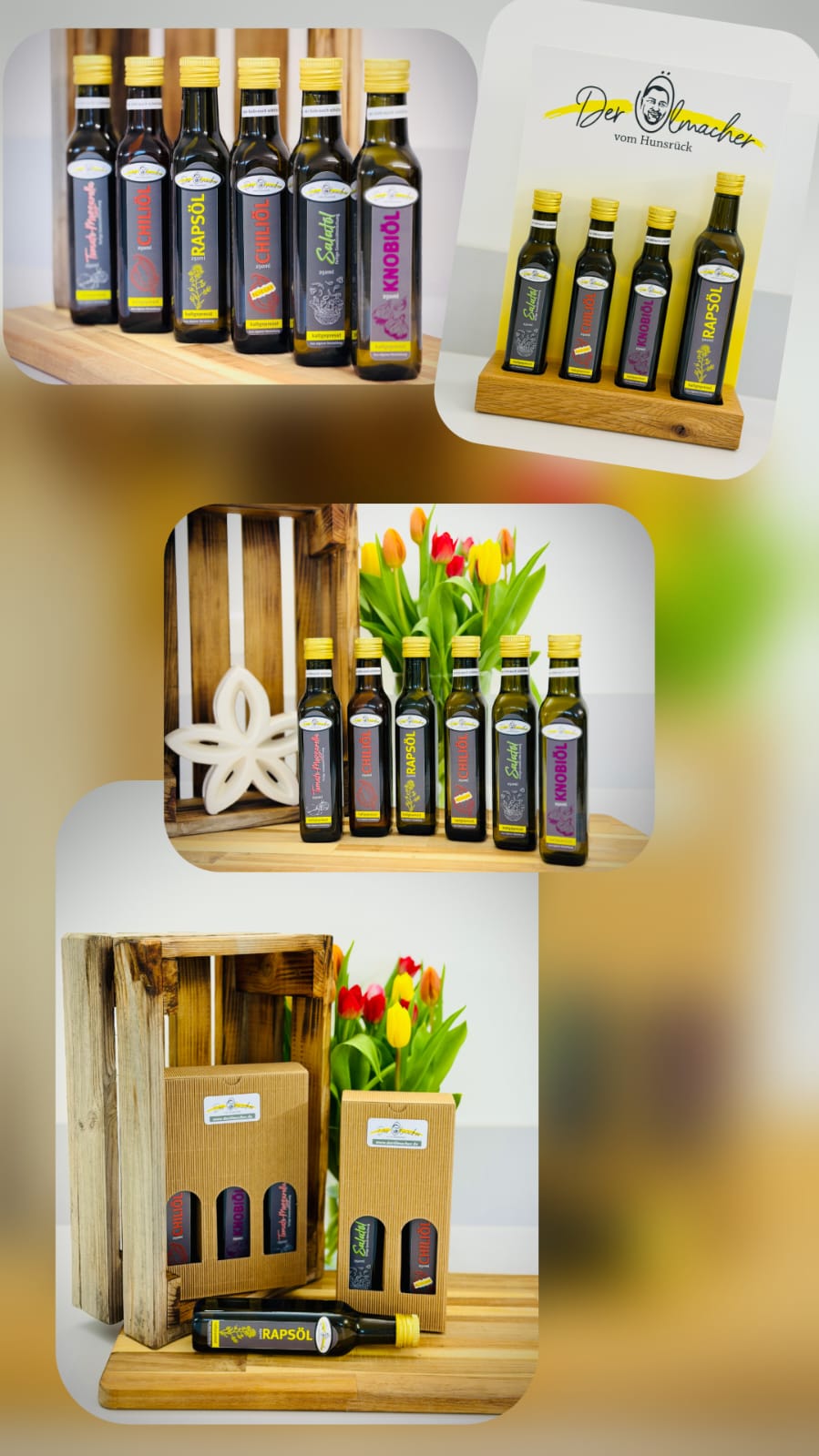 www.derölmacher.deÖlsortiment Rapsöl, Knobiöl, Chiliöl mild, Chiliöl scharf